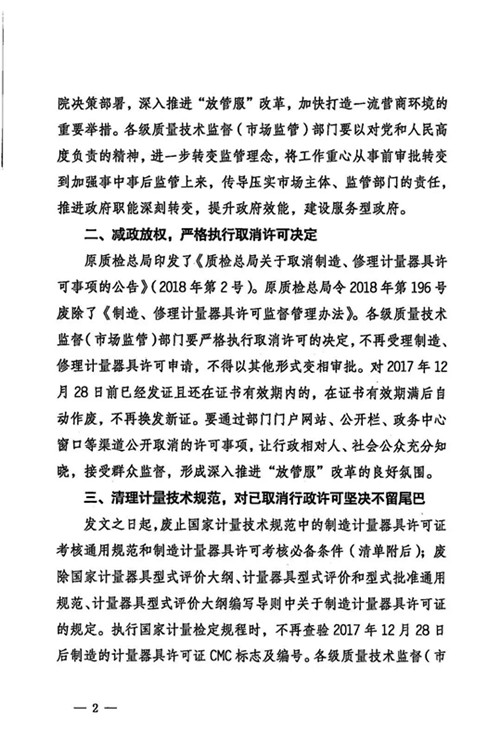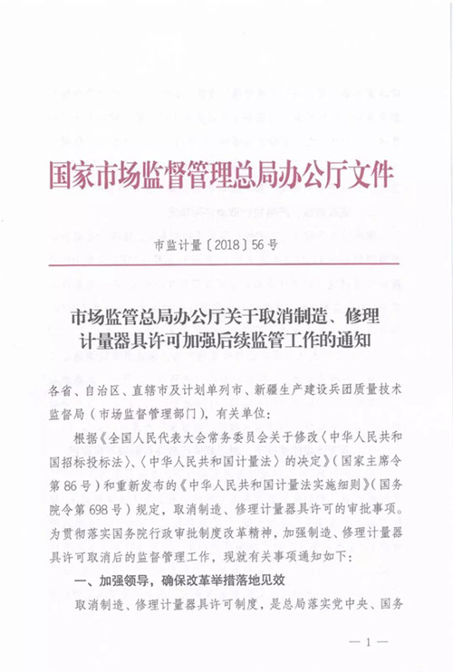 近日,市场监管总局办公厅发布《星空真人取消制造、修理计量器具许可加强后续监管工作的通知》。