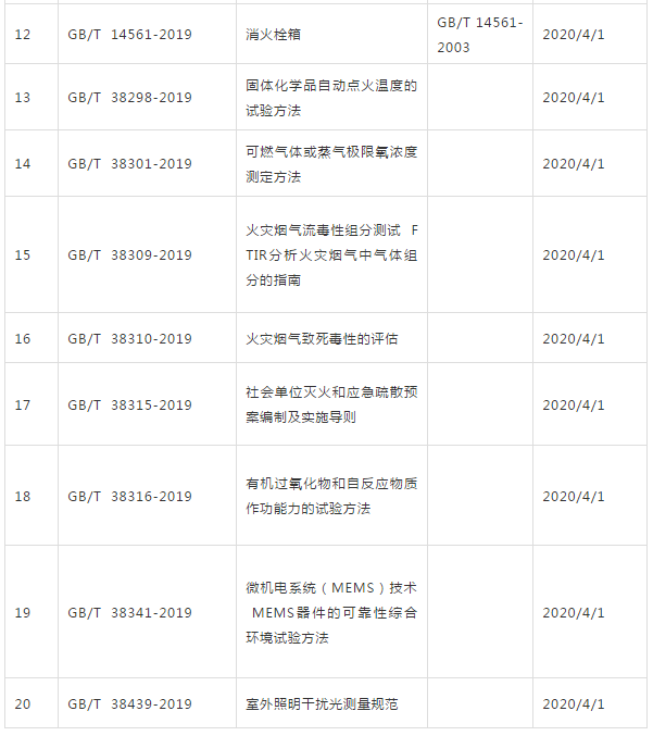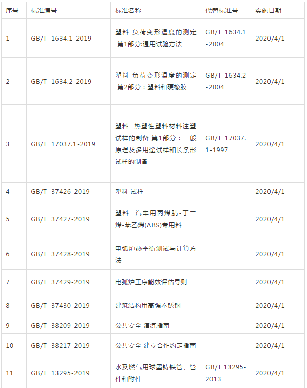 2020年4月1日起,又有一批国家标准将实施,详细如下: